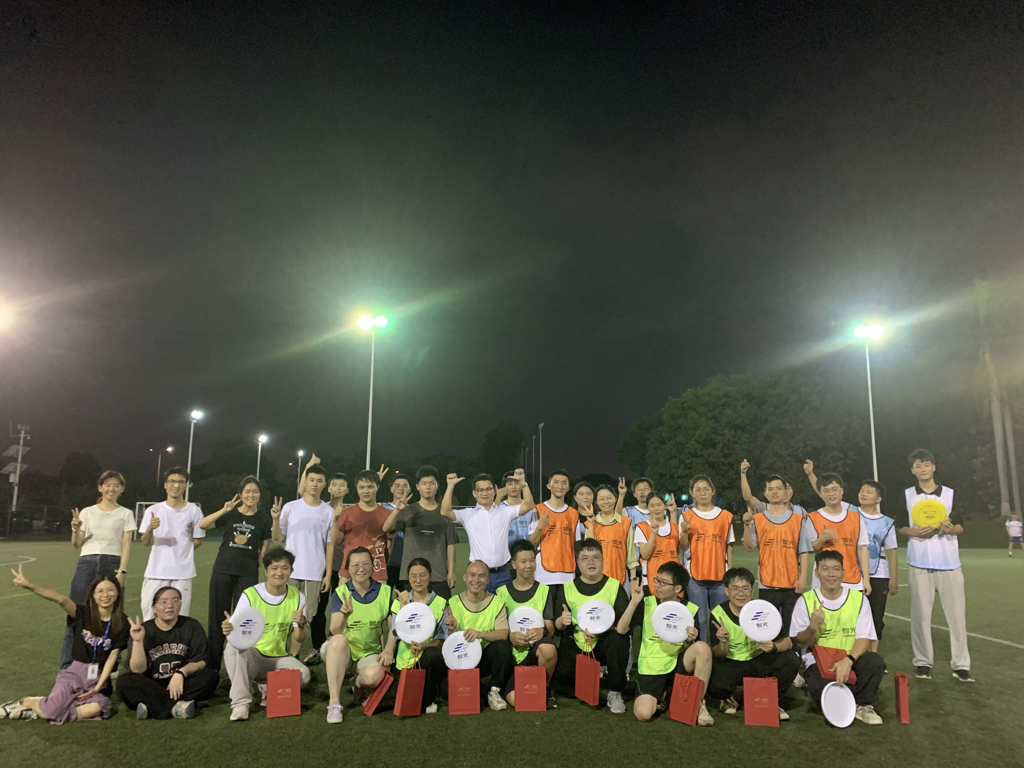飛盤活動(dòng)開始前,在教練的引導(dǎo)下,大家開始舒展腰身、活動(dòng)筋骨,為暢享飛盤運(yùn)動(dòng)做好充分的準(zhǔn)備。在明確比賽規(guī)則及規(guī)范動(dòng)作后,參與活動(dòng)的員工們被分為四隊(duì),分別為紅隊(duì)、藍(lán)隊(duì)、綠隊(duì)及橙隊(duì),在教練的指導(dǎo)下進(jìn)行了激烈而歡樂的比賽。體育場(chǎng)上,飛盤往返的弧線盡情交織,青春的朝氣蓬勃煥發(fā),汗水在夕陽下?lián)]灑,每個(gè)人都樂在其中。經(jīng)過激烈角逐,最終綠隊(duì)斬獲冠軍。