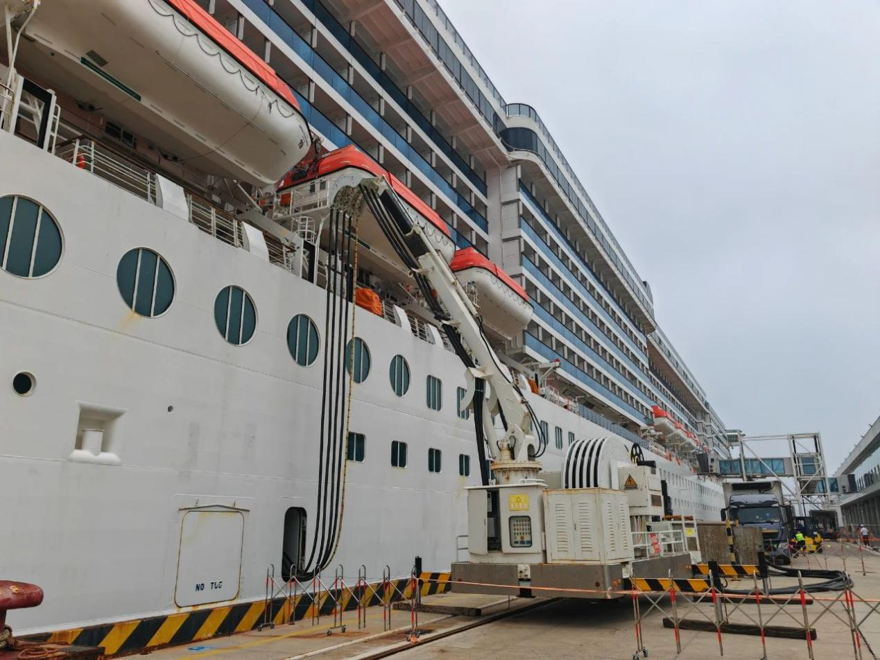 由智光電氣股份提供的16MVA高壓岸電系統(tǒng),于2023年由中國(guó)船級(jí)社質(zhì)量認(rèn)證有限公司(CCSC)開(kāi)展連船前現(xiàn)場(chǎng)檢測(cè),完成了岸電空載運(yùn)行試驗(yàn)、全負(fù)荷加載運(yùn)行試驗(yàn),取得了岸電系統(tǒng)檢測(cè)報(bào)告和中國(guó)船級(jí)社檢驗(yàn)證書(shū),滿(mǎn)足大型郵輪使用岸電的需求。本次岸電連船供電3小時(shí),接電量達(dá)到14807kWh,減排二氧化碳3.95噸,實(shí)現(xiàn)了青島郵輪母港首次岸電連船。